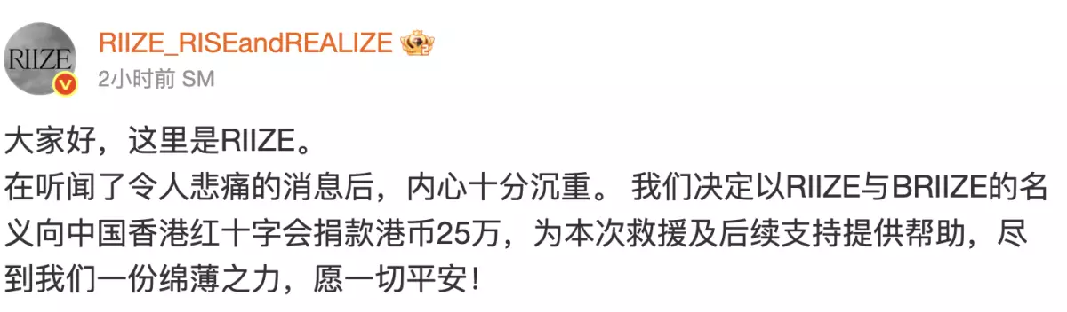 RIIZE額外捐出25萬港元。RIIZE官方微博截圖