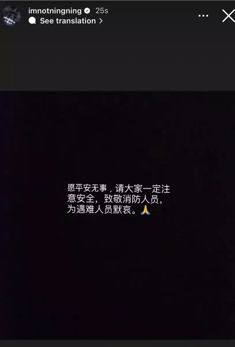 aespa中國成員NingNing亦發限時動態為香港打氣。Ningning IG截圖