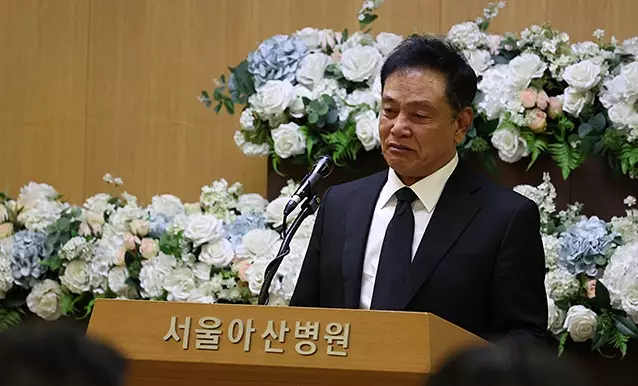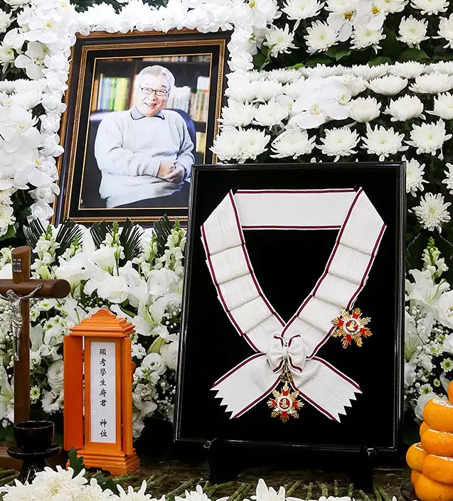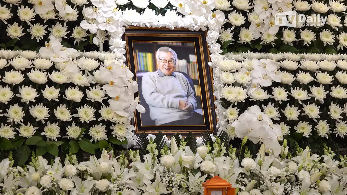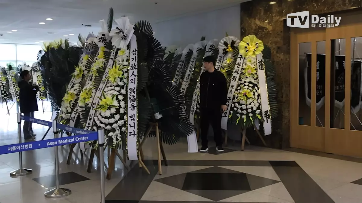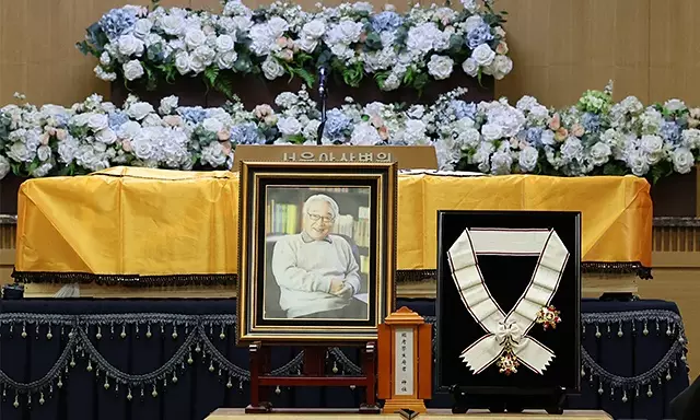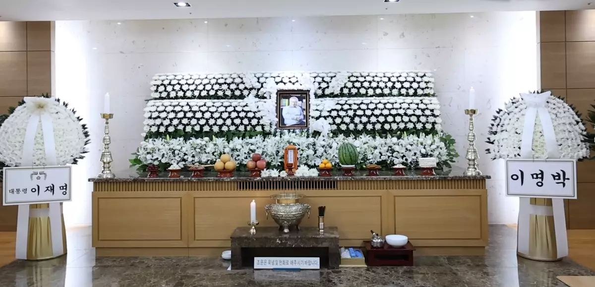 李順載設靈,總統李在明和前總統李明博也送上弔唁花圈。網上圖片