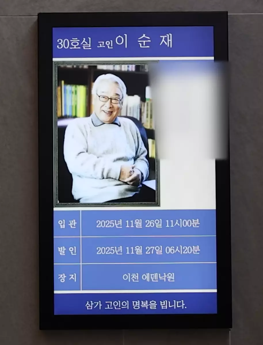 被譽為「國民爺爺」的韓國資深演員李順載於11月25日凌晨辭世,享壽91歲。11月27日清晨,李順載告別式暨出殯儀式在首爾松坡區峨山醫院殯儀館莊重舉行,演藝圈眾多後輩齊聚一堂,淚別這位演藝界泰斗。
