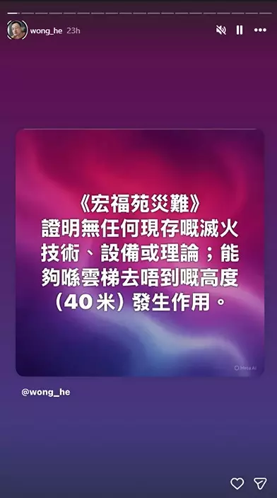 其後他再度發文表示:「《宏福苑災難》2000災民臨時入住邊間五星酒店?」但相關帖文反應冷淡,遠不及上一則引起的巨大反彈。