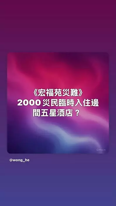 其後他再度發文表示:「《宏福苑災難》2000災民臨時入住邊間五星酒店?」