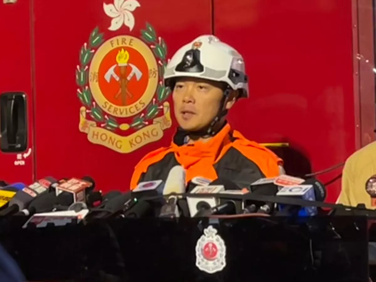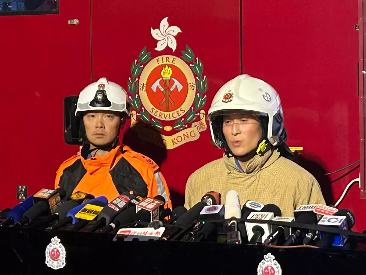 消防處助理救護總長(新界西)林卓豪(左)交代大埔五級火警最新情況。巴士的報記者攝