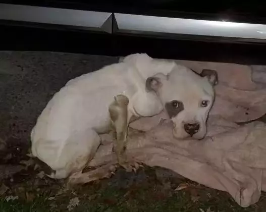 國外一名女屋主深夜驚見瘦弱流浪犬躲自家車底求生暖心救起,之後轉送救援組織助獲新生。
