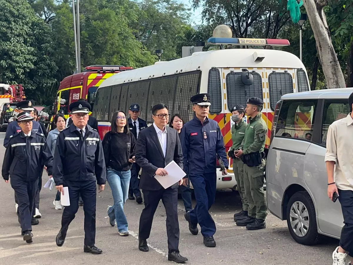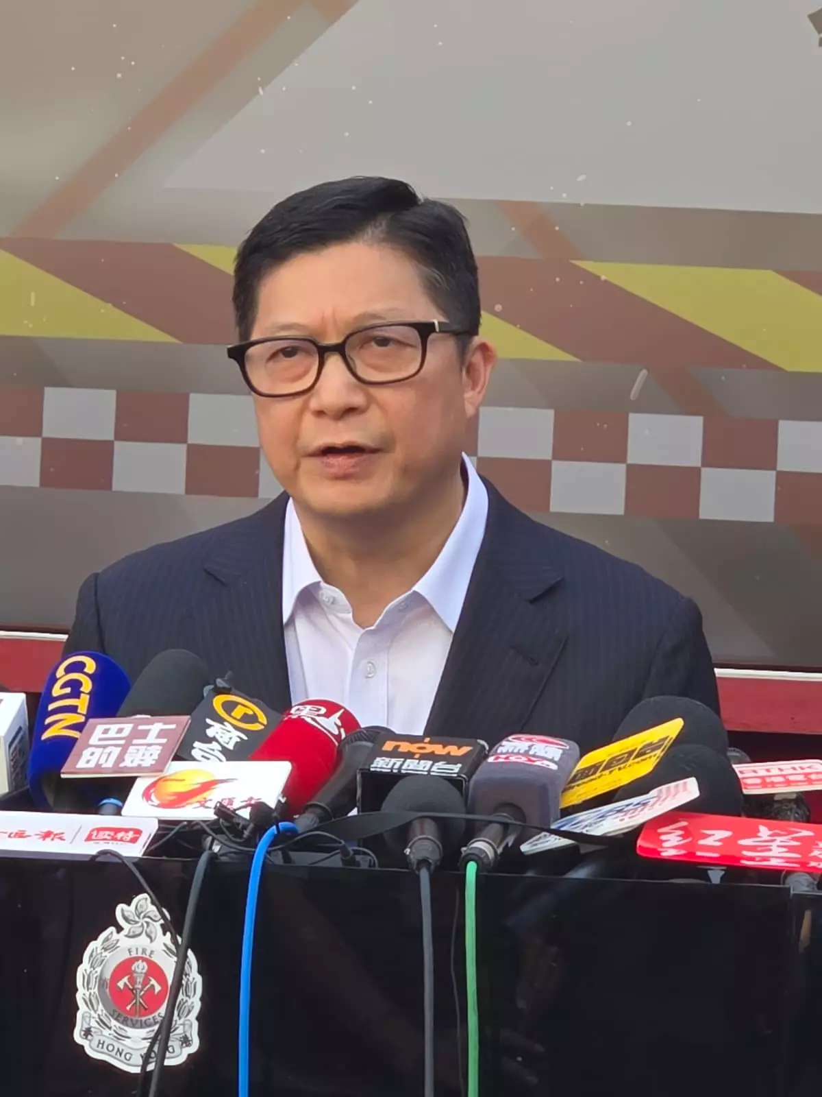 大埔宏福苑五級火警,保安局局長鄧炳強向傳媒簡介最新情況。巴士的報記者攝