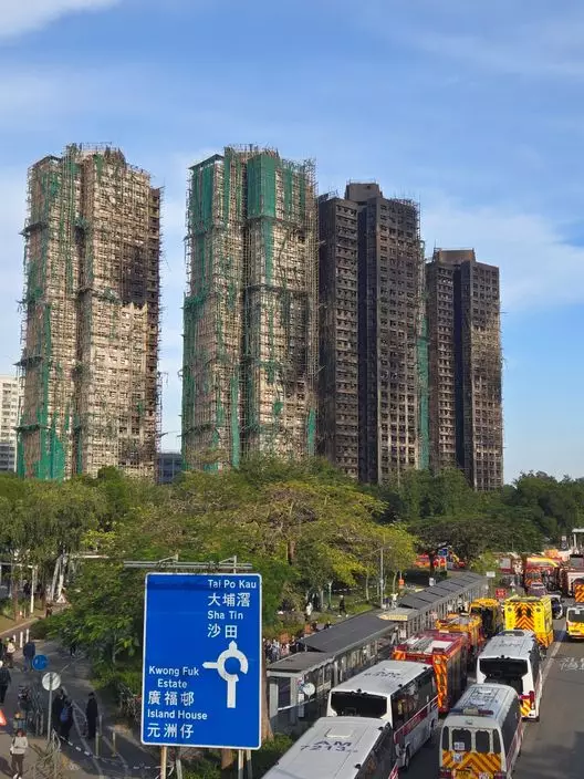 大埔宏福苑五級火經連日撲救,大致熄滅。巴士的報記者攝