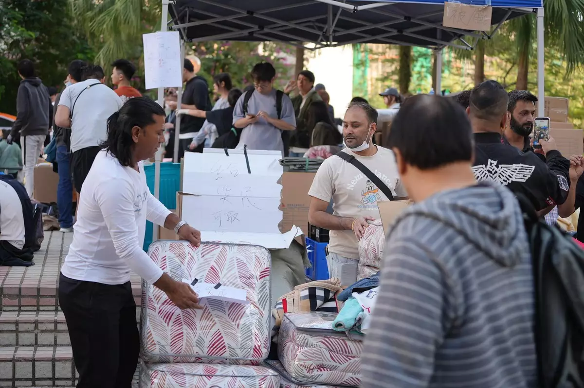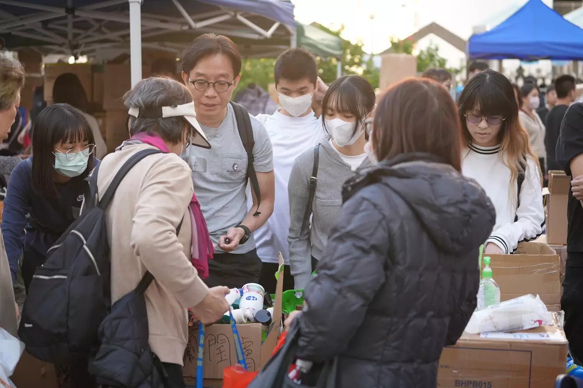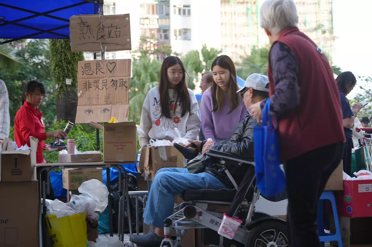除本地義工外,南亞裔等少數族裔人士亦協助搬運物資、指示居民排隊及分流,齊心參與救災。現場秩序良好,展現社區互助力量。當有行動不便的長者坐著輪椅到場,義工逐一講解可領取的用品內容,又主動提供協助,為災民送上溫暖。