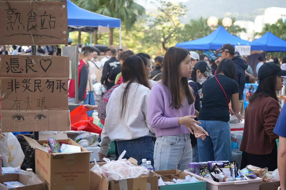 另外,部分居民在商場及屋邨公共空間搭建簡易地鋪休息,床褥旁放有水、餅乾、衛生用品等,部分由熱心市民主動補給。現場不同角落都見到上面寫著「非災民勿取」字樣的紙皮,提防有人貪心擅取物資,期望所有物資都用在災民身上。