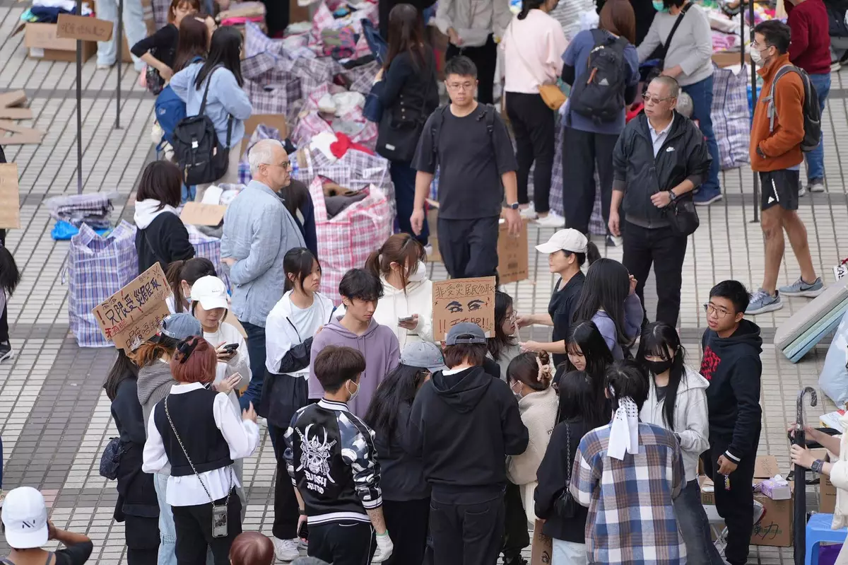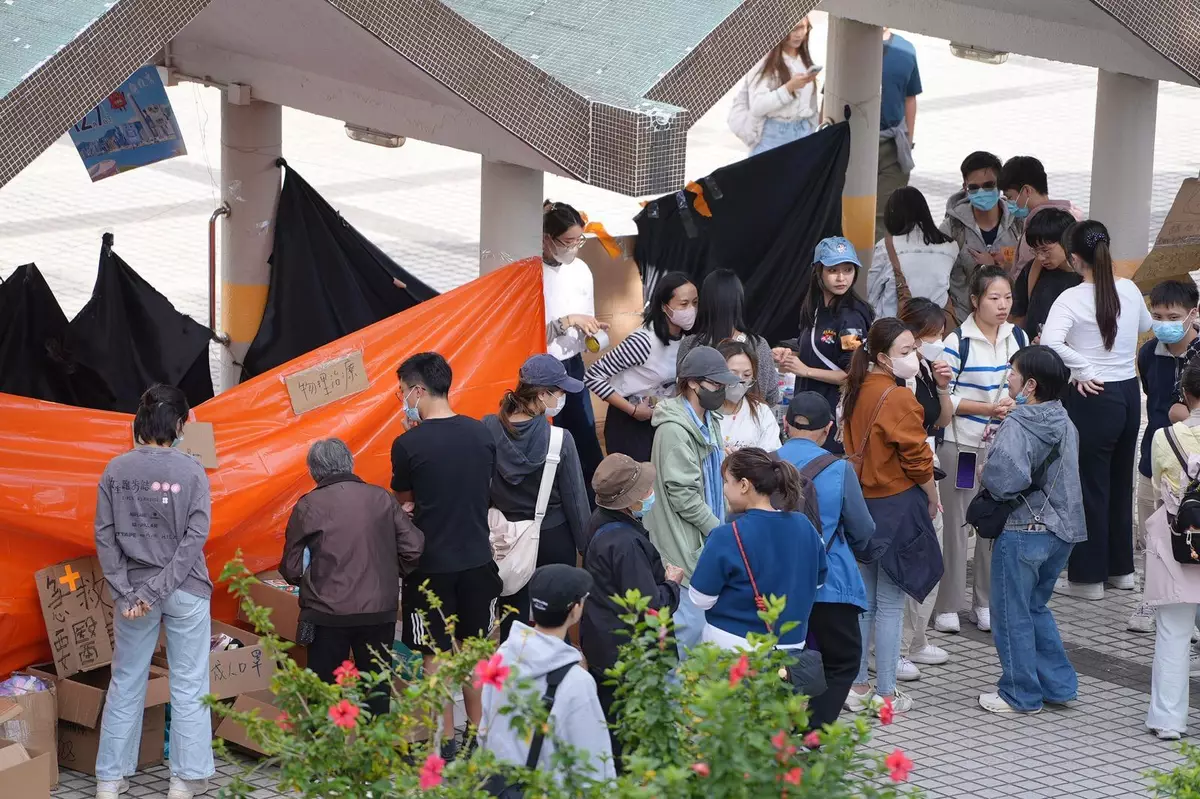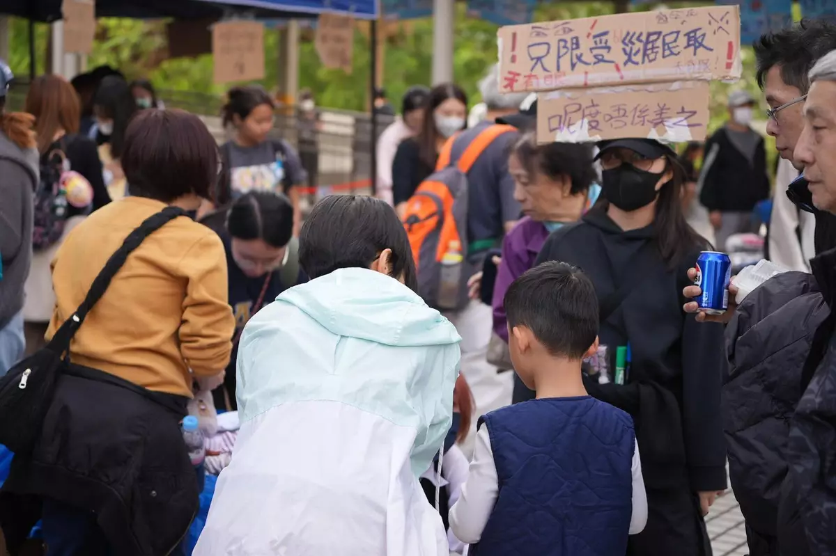 鄰近宏福苑災場的廣福邨平台,有市民自發設立物資站,支援災民的身心需要。巴士的報記者攝
