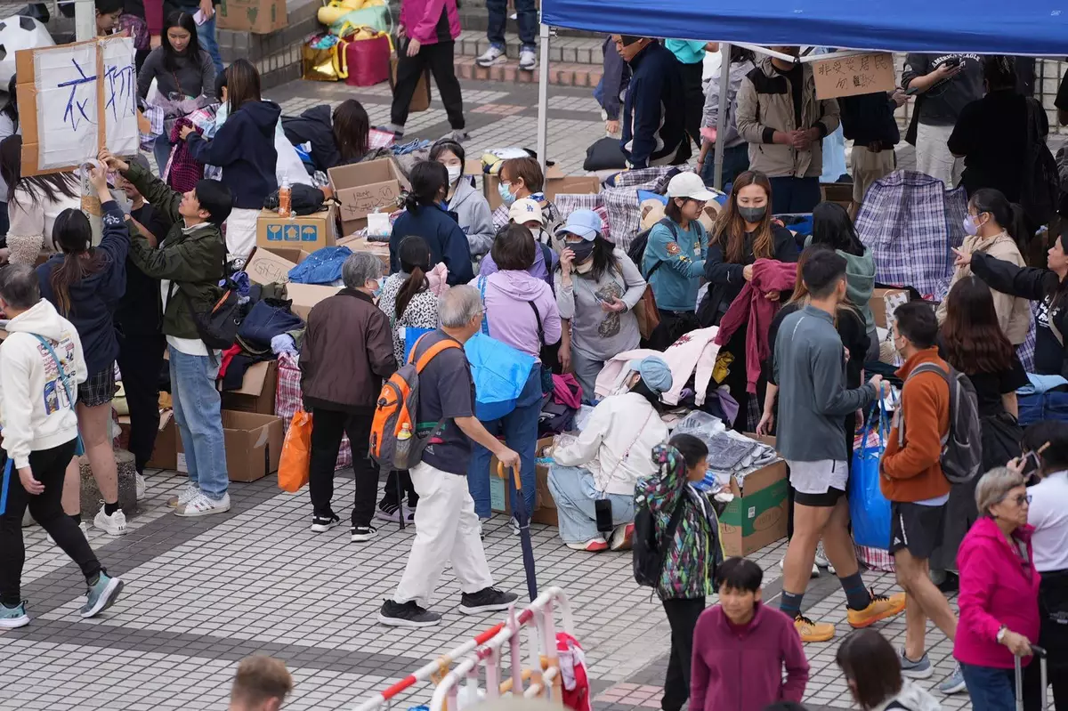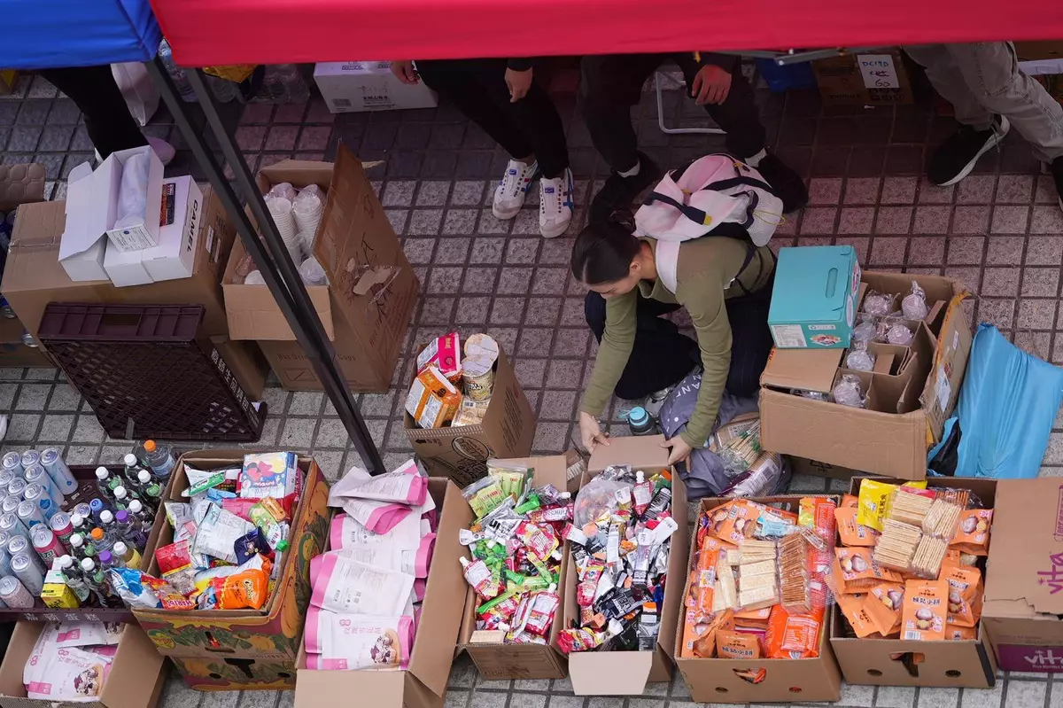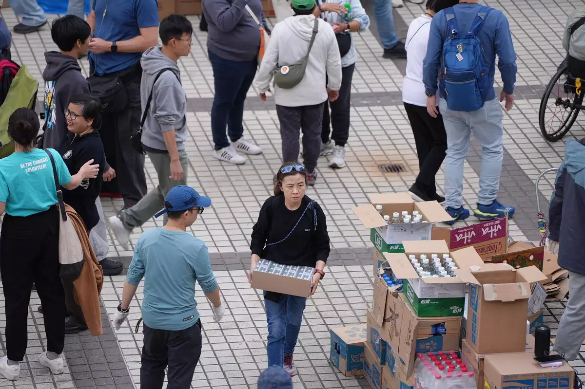 記者現場所見,多支義工隊伍持續向居民派發日用品,包括食物、衣物、清潔用品及基本醫療物資,甚至有寵物部;物資分門別類,方便災民取用。