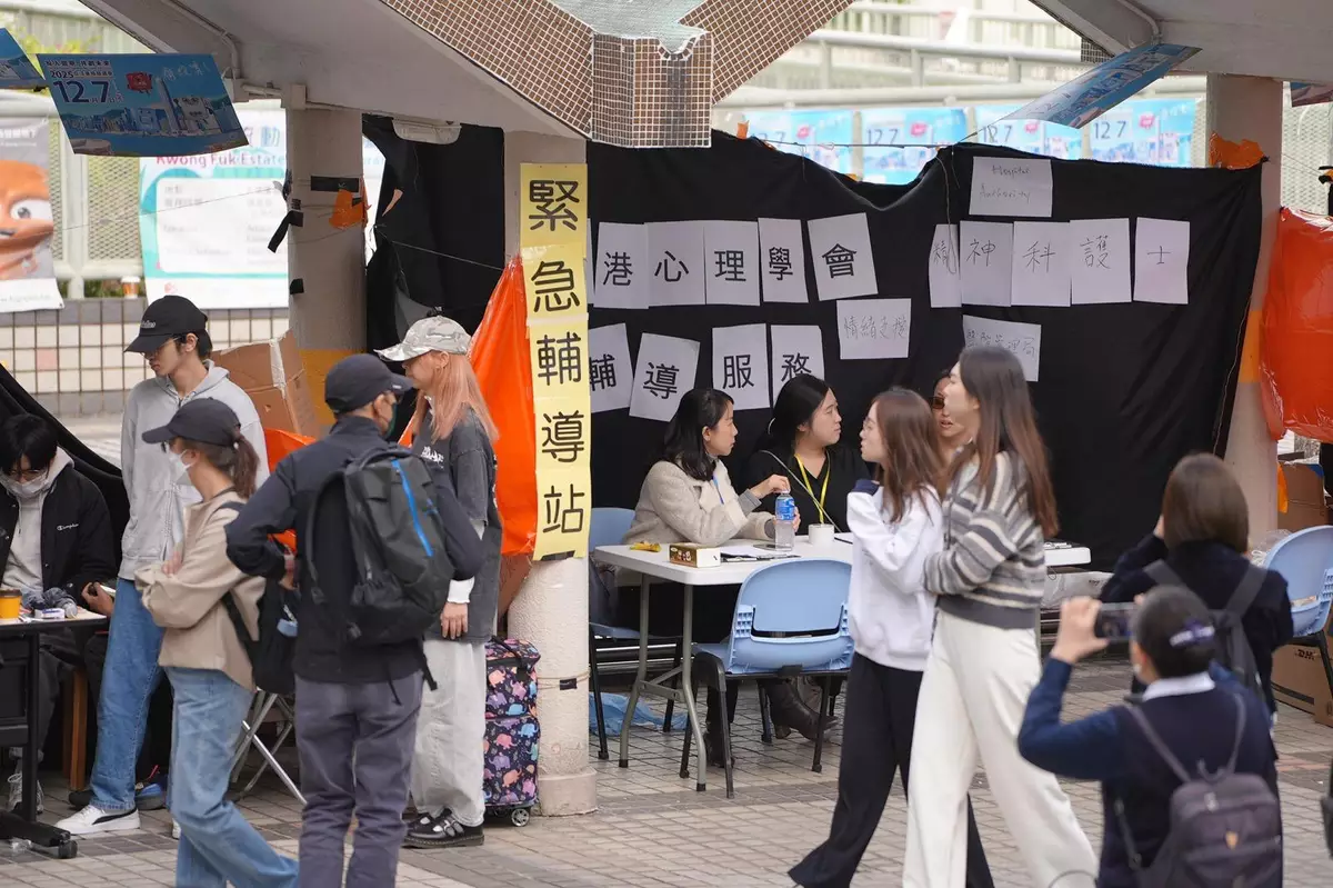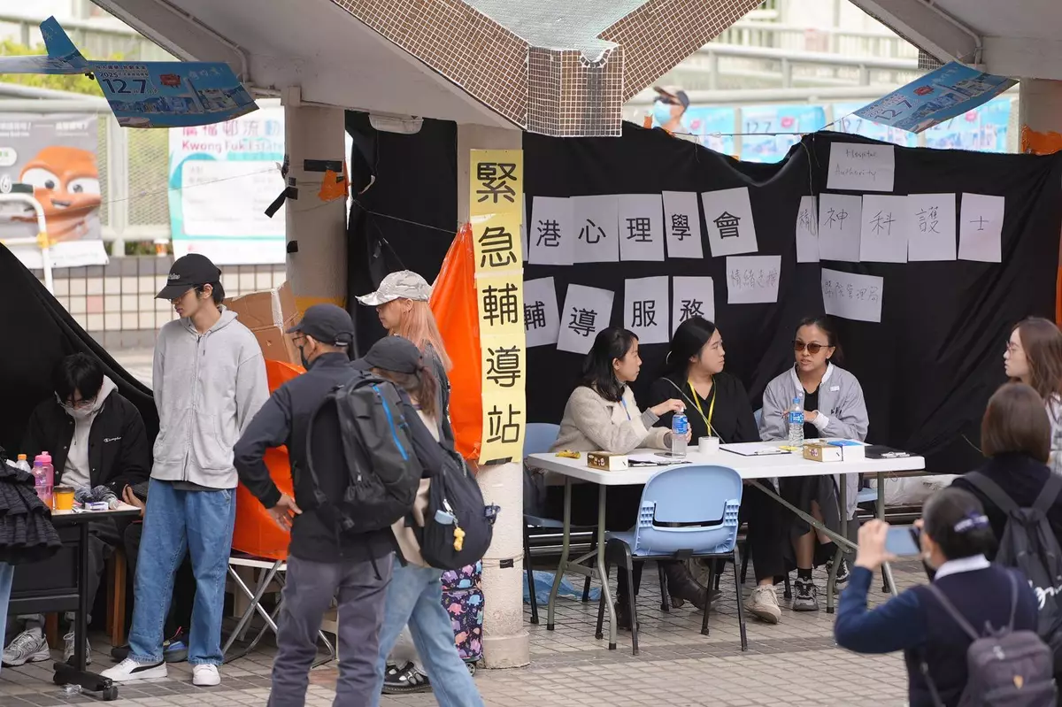 大埔宏福苑五級火警災情嚴重,牽動全城的心,不同團體和市民在鄰近災場的廣福邨平台自發設立物資站,亦有專業團體提供輔導服務。