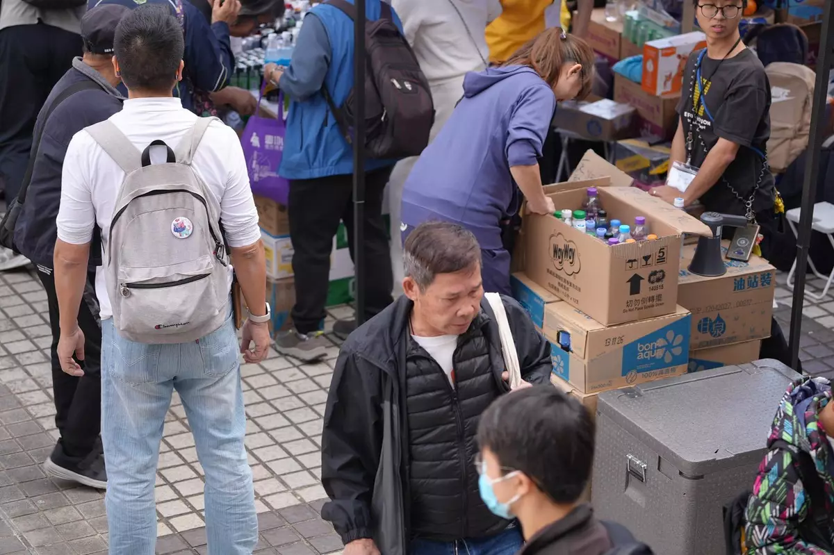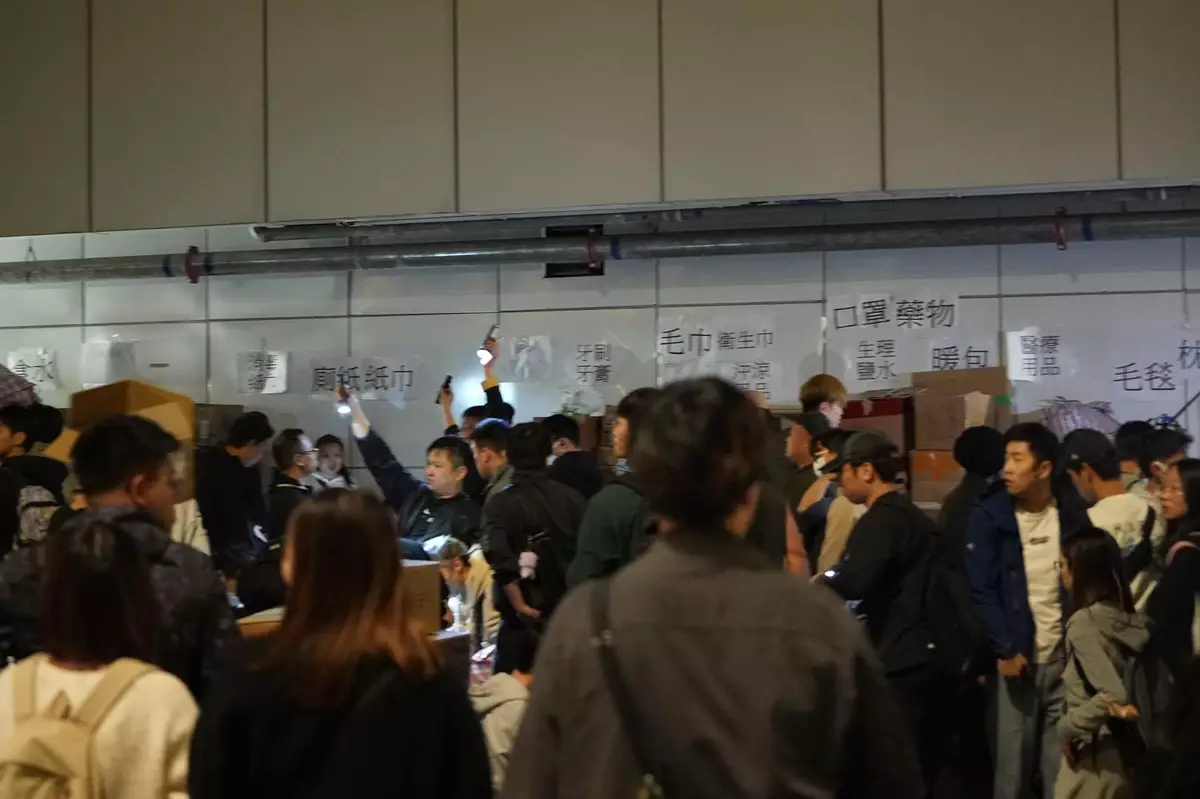 另外,入夜後,大埔墟港鐵站外的狹窄私家車落客區成為臨時集散點,數十名市民自發在場協助處理物資。多輛私家車抵達後,義工即時上前從車尾廂卸下物資,再按種類快速分類,隨即送往受災地點。由於該處人行通道狹小,不時有人大聲提醒義工們「睇車」。義工們說,目前物資和人手都足夠,所以暫時不收物資。