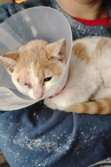 經獸醫檢查,小貓傷勢嚴重且有感染及呼吸問題,甚至失去了一隻眼睛。幸運的是,在醫療團隊的悉心照料下,小貓最終奇蹟般捱過難關,並被改名為「Peach」,順理成章留在這個曾拯救牠的家庭。