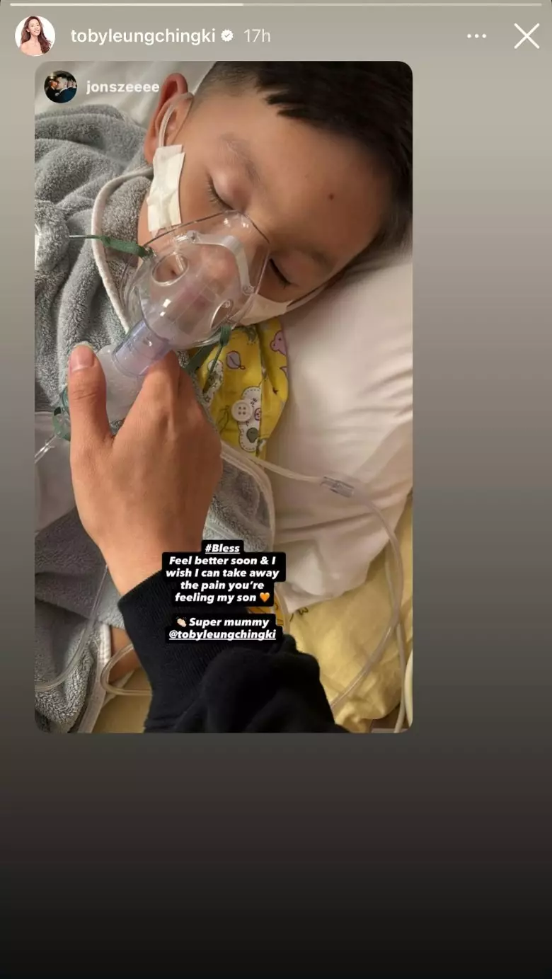 天氣漸涼各種呼吸道病毒活躍,藝人梁靖琪(Toby)與老公施雋賢的幼子近日就因病入院,甚至需要吸氧治療。梁靖琪在IG限時動態分享仔仔臥病床的照片,可見幼子吸住洋氣閉目休息,顯得相當疲憊,令父母心疼不已。
