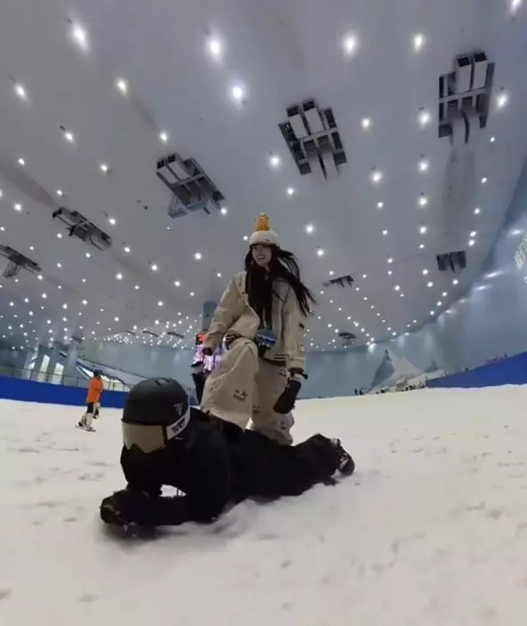 從曝光影片可見,女子後腳已固定在單板滑雪板上,前腳則踩在一名男子背部,俯伏地面的男子則充當「臨時支點」。2人自坡道滑下時,女子在加速過程中突然失去平衡,瞬間向前僕倒,腿部明顯遭受劇烈扭轉。女子倒地後痛苦哀叫,滑雪場職員見狀即時上前協助處理。