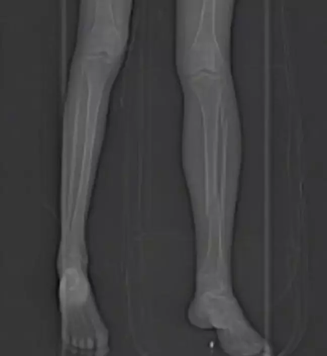 女子踩友人背上滑雪失重心翻摔,導致雙腿被扭成不自然角度當場骨折。影片截圖
