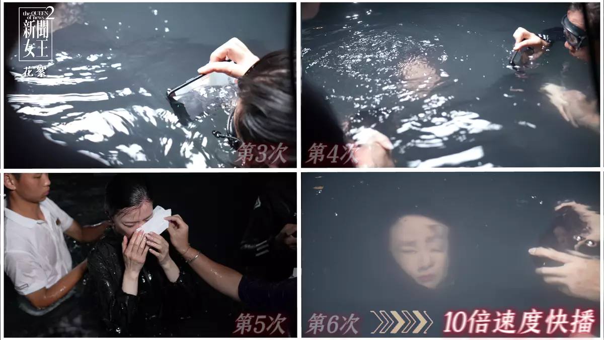 根據劇組公開的拍攝花絮,無論是Man姐與梁景仁在真‧引水道中的場口,或是在劇組用石屎搭建的「深坑水池」中的遇溺場面,製作均相當大陣仗。單是廠景拍攝,劇組除以石屎還原真‧引水道內貌,還以大型桶裝水高度還原二人遭洪水猛衝畫面。觀乎拍攝花絮,劇組預備了兩大桶水打孖淋向阿佘及馬明,由於劇中有大量Man姐整個人浸在水中的Mood Shot,為了拍出好效果,阿佘二話不說按照劇組指示、一次又一次整個人「瞓入水中」(前後重重覆覆至少十次),而且每次泡在水中時間也至少10秒,為配合劇情又要在水中睜開雙眼,單看文字描述也覺得辛苦。難得的是,阿佘拍攝時不但全程零怨言,拍畢後還展現出超燦爛笑容,相當敬業樂業。