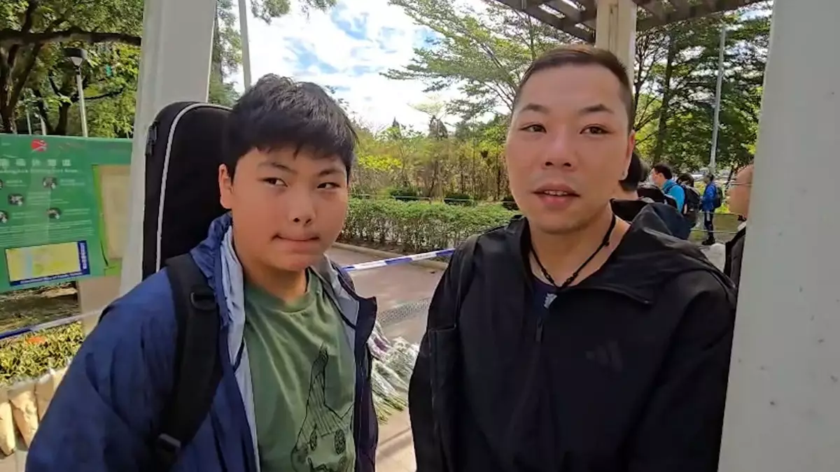 另外有兩夫婦亦帶同十多歲的兒子到來,兒子說,搭巴士經過見到宏福苑燒得好厲害,所以過來看一看,似是想盡點心意,其母親說,幸好兒子未有受事件情緒有太大影響,但都希望過來悼念一下。