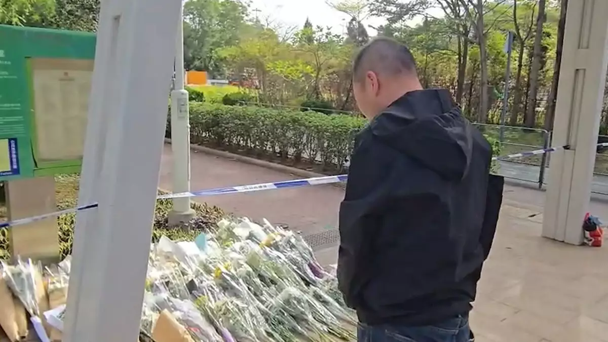 在宏福苑外圍,不少市民帶著鮮花前來悼念,他們默默將花放在封鎖線外,不少人都低頭默哀或默禱,無聲地為無辜失去生命的居民誌哀。