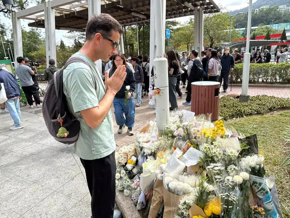 來自伊朗的香港市民Hossein Bahrami Nekoo表示,自己曾經在大埔一帶住過3年,對這一帶有非常深厚的感情。「我們有一個跑步小組,當時大家經常聚在一起,邊跑邊欣賞大埔的美麗景色,使得我不僅對香港,也對大埔有很深的情感連結。」在得知本次災情後,他感到非常難受。看著曾經美麗的景色毀於大火中,曾經是大埔居民的他十分痛心。他趁著週末,專程過來獻花弔唁死者。