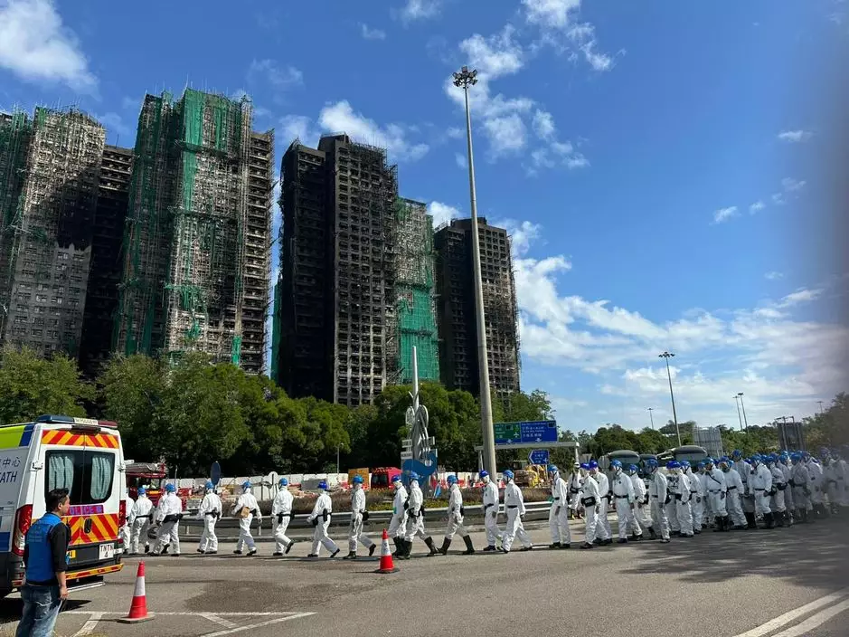 災難遇害者辨認組 (DVIU)出動,為大埔宏福苑火災善後。警方圖片