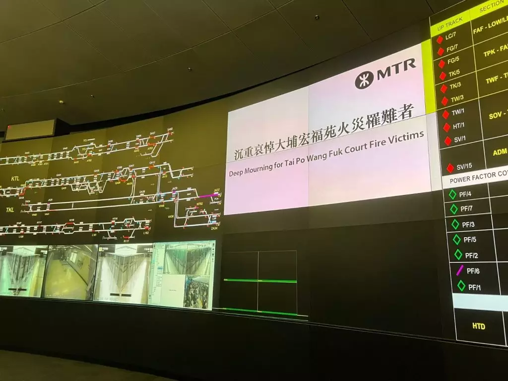 港鐵表示,對大埔宏福苑火災表示極度哀痛,港鐵主席歐陽伯權聯同行政總裁金澤培、常務總監香港客運服務楊美珍、多名港鐵總監及管理人員星期六早上8時於車務控制中心默哀三分鐘,悼念於火災中不幸罹難的人士。所有在港鐵公司建築物的國旗、區旗及港鐵公司旗幟亦下半旗誌哀。