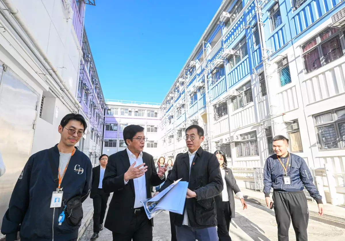 財政司副司長黃偉綸和房屋局局長何永賢,到其中一個位於元朗的過渡性房屋項目「路德會雙魚薈」,探訪及慰問受大埔火災影響而獲安排入住的居民,關心他們的需要。