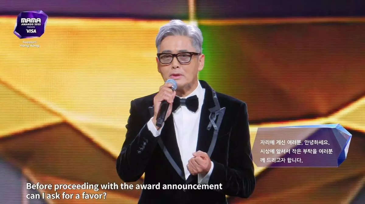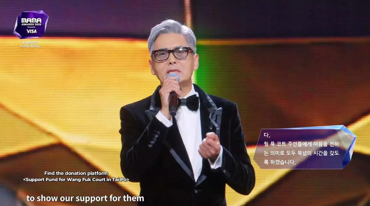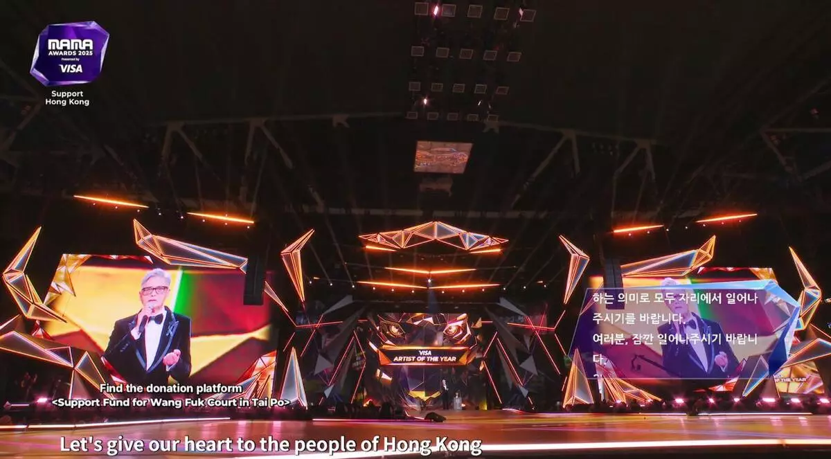 韓國年度音樂盛事《2025 MAMA AWARDS》相隔7年重臨香港,一連兩晚在啟德體育園主場館舉行,但鑒於大埔宏福苑周三(11月26日)發生五級世紀火災,頒獎禮雖然如常舉行,但會修改流程,以及取消紅地氈環節,參與的韓國藝人及歌手都為災民送上祝福,而今晚(11月29日)的壓軸頒獎嘉賓就時之前曾被指不會出席的周潤發!