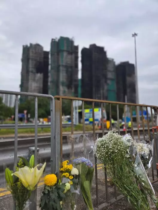 大埔宏福苑火災,廣福休憩處擺滿市民獻上的白花。巴士的報記者攝
