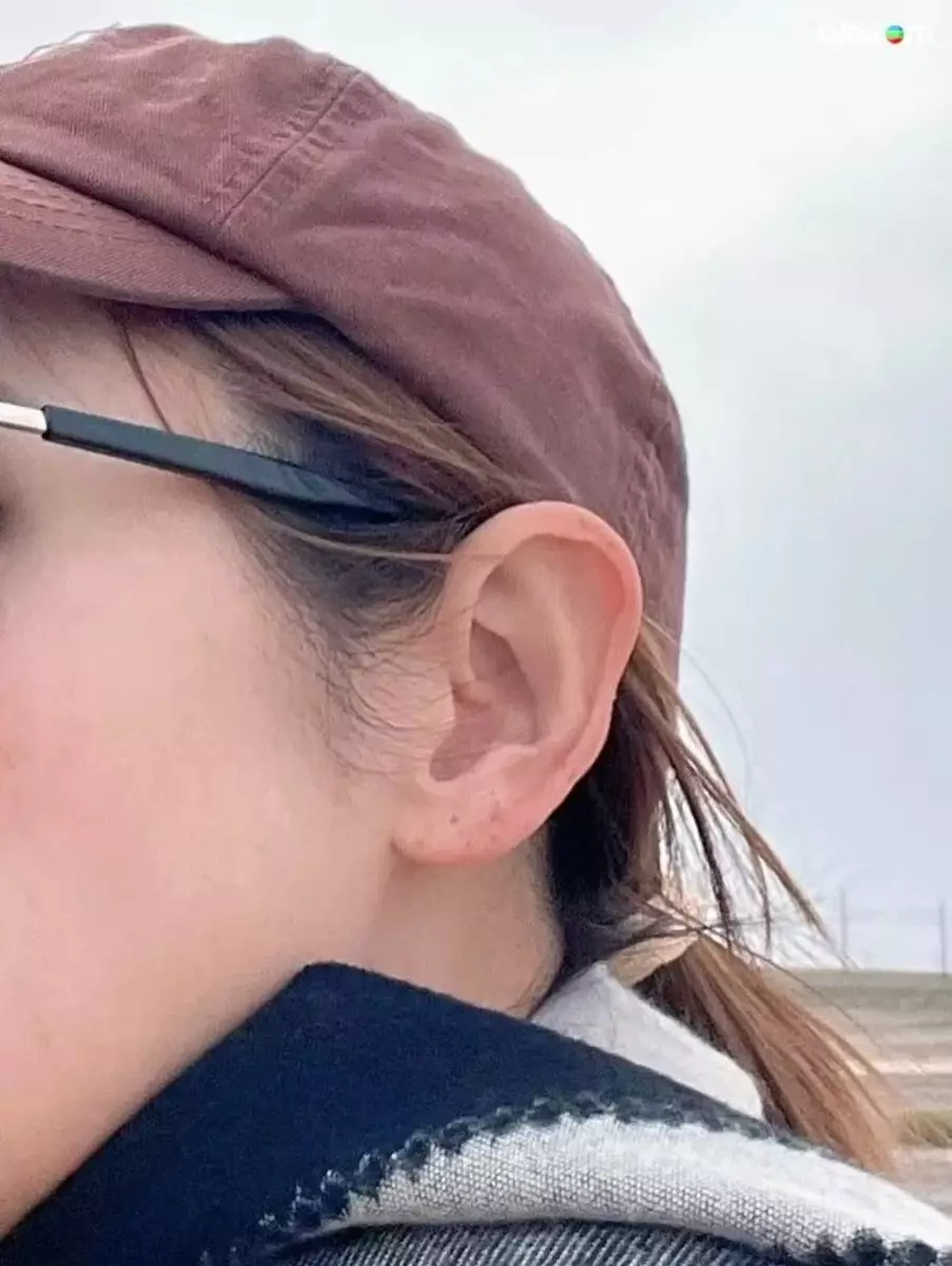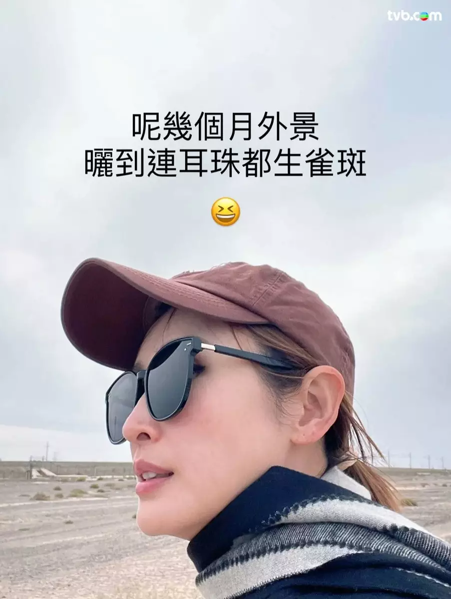 陳貝兒在社交網上分享了拍攝的花絮,留言道:呢幾個月嘅外景拍攝,風吹雨打,仲曬到連耳珠都出雀斑。(陳貝兒IG圖片)