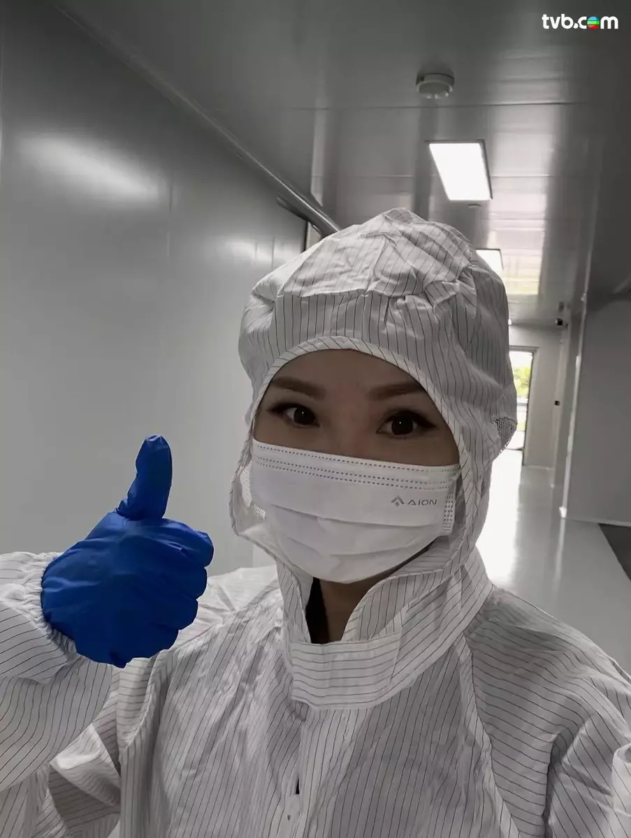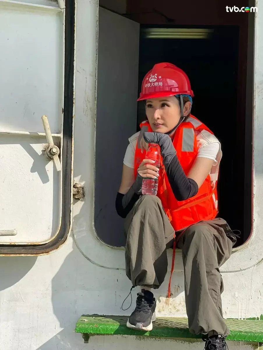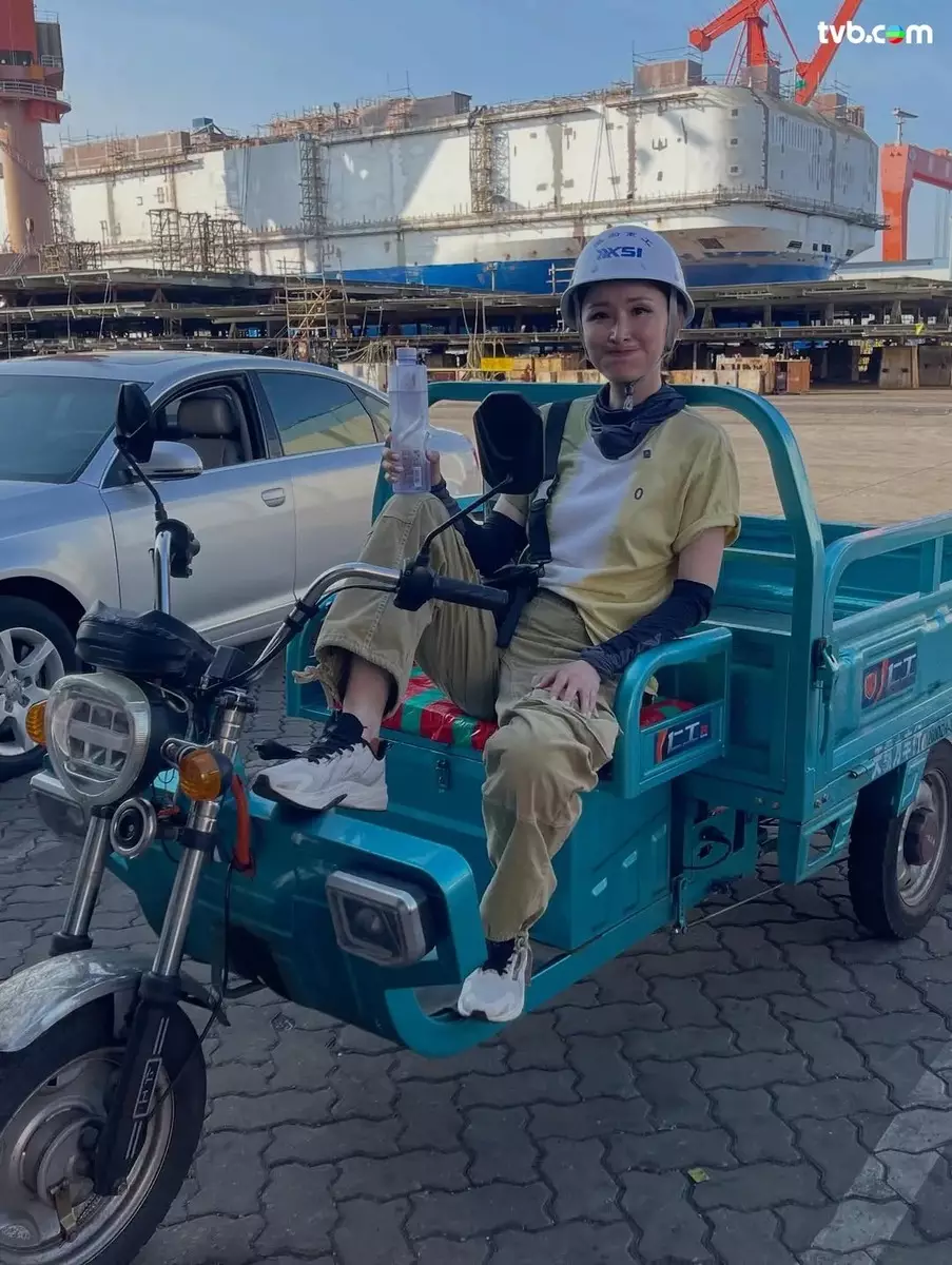 貝兒還戴安全帽乘坐三輪貨車、登船拍攝,更一度全套防護裝上陣!(陳貝兒IG圖片)