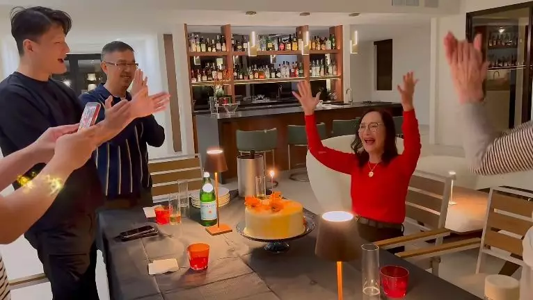 胡燕妮早前迎來80歲大壽,兒子尹子維與未婚妻徐冬冬飛往美國為她慶祝,徐冬冬在社交平台分享慶生影片,並留言:「子維的媽媽80大壽,全家人首次拍vlog,祝媽媽永遠健康年輕,媽媽生日快樂。」可見,身穿紅色上衣的胡燕妮皮膚白皙,臉色紅潤,完全看不出真實年齡,戴著眼鏡更顯知性美!一家人在餐廳慶享食飯後,就回家繼續慶祝,由哥哥尹子洋親自下廚,尹子維做幫手,炮製出色香味俱全的一餐,隨後一家人在客廳又唱又跳,氣氛熱鬧又溫馨!