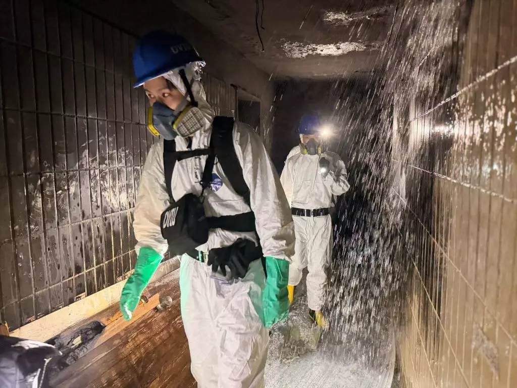 警方在社交平台發表多張最新圖片,身穿白色保護衣的DVIU等人員進入到多個遭大火吞噬的單位內,爭取在滿目瘡痍的災場中搜索,相中見到多個單位內傢具幾乎盡成灰燼,牆身燒黑甚至剝落,加上光線不足,大大增加了搜索難度。