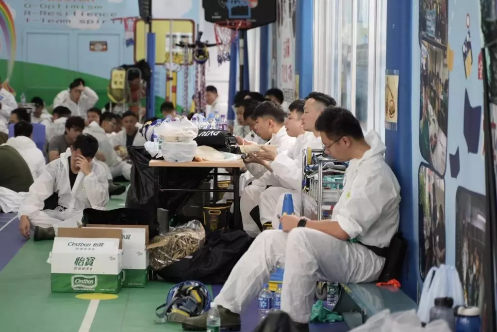災難遇害者辨認組人員爭取時間,稍作休息後隨時繼續搜索工作。香港警察FB圖片