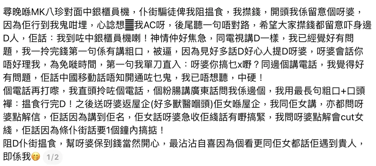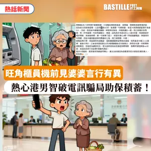 近日有港男於社交平台Threads分享,日前在櫃員機排隊時,發現身後一位婆婆神情焦急地通電話,不斷向對方表示「我到咗中銀櫃員機喇!」。他察覺婆婆言行有異,便主動介入了解。
