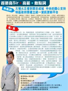 高SIR:大埔宏福苑的火災,如一場無情風暴,給香港帶來巨大傷痛。正如「港澳平」文章所言,在這場災難面前,我們看到了眾志成城的強大力量,也深切感受到中央的關心支持給予人們抗災救災強大精神鼓舞和充足信心底氣。中央第一時間展現出高度重視與殷切關懷。領導人迅速了解救援和傷亡情況,表達哀悼與慰問,要求全力降低損失。中央港澳辦工作小組連夜赴港,中央政府駐港聯絡辦成立應急專班協助救災。讓我們堅信,在中央支持下,香港定能戰勝困難。港澳辦全力支持,廣東省也積極響應,在粵港澳大灣區應急救援機制下,廣東根據香港需求,提供熱成像勘察無人機等援助,有效提升火災現場勘察與應急調度能力。內地眾多單位、企業紛紛開展支援行動,血濃於水的同胞之情溫暖着香港。不過,在災難應對過程中,特區資訊混亂問題確實是不容忽視。物資是否充足、是否停收,義工是否欠缺、是否暫不需要,捐血是否缺血等信息,市民難以清晰掌握。又例如是政府即時向每戶災民派發一萬元應急補助金,但申請方式、發放時間等資訊也未及時準確傳達。為此,建議特區政府建立一個統一資訊更新平台,如政府新聞處,及時公布各類關鍵信息。同時,政府要主動擔當,及時向市民發放資訊,打假隊也要即時行動,打擊虛假信息,穩定社會秩序。眾志成城,必能克難前行。有中央和祖國內地的強大後盾,香港特區政府帶領社會各界發揚獅子山精神,定能做好救災工作,渡過難關。