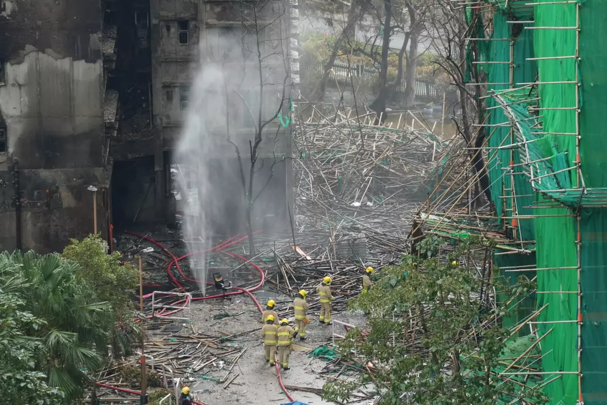 大埔宏福苑五級火警的後續工作仍在進行,警方災難遇害者辨認組(DVIU)的人員一早就進入火場,繼續搜索餘下單位,而消防員則仍然在場戒備,另外消防亦派出隊伍到場巡查。