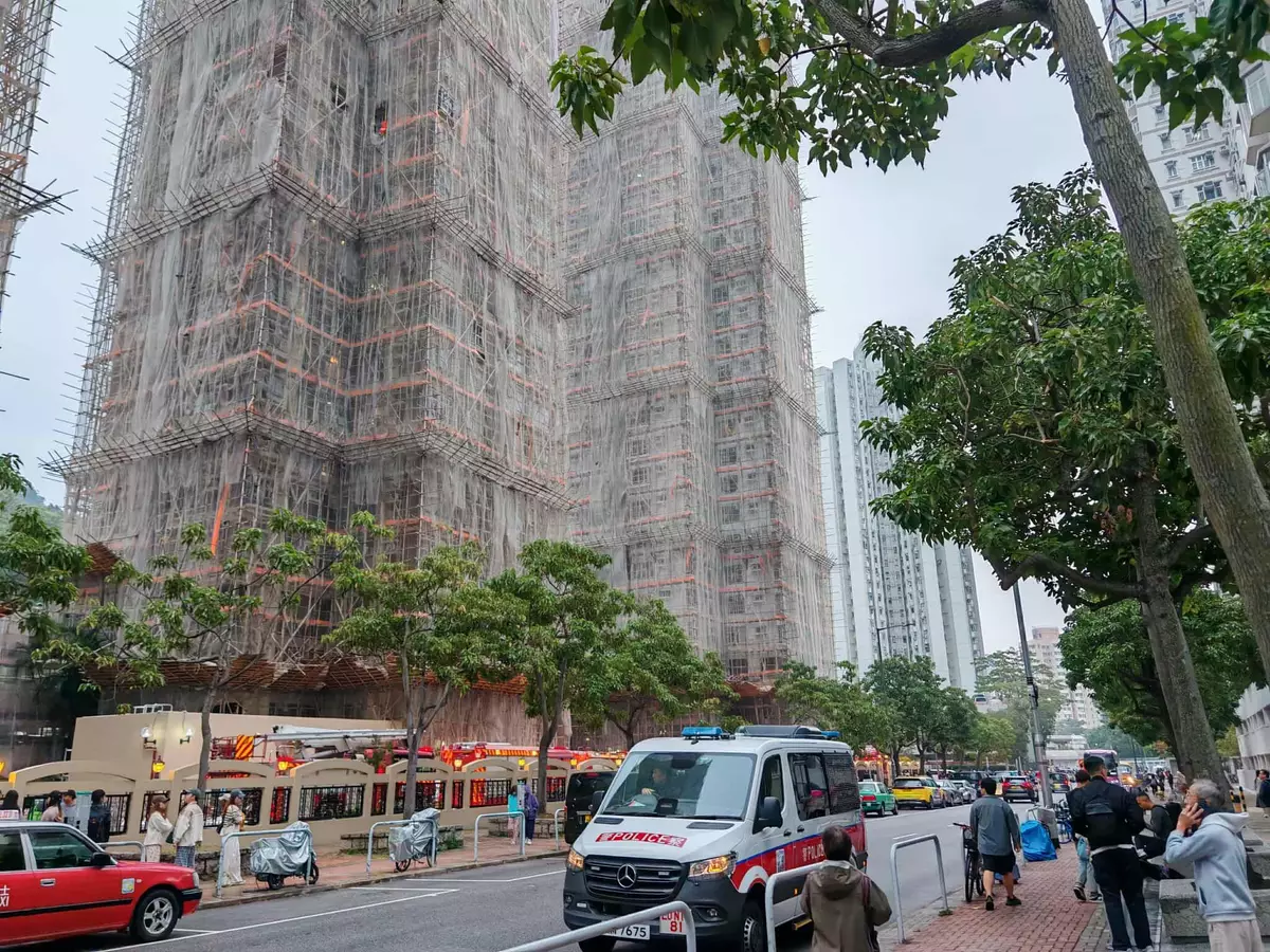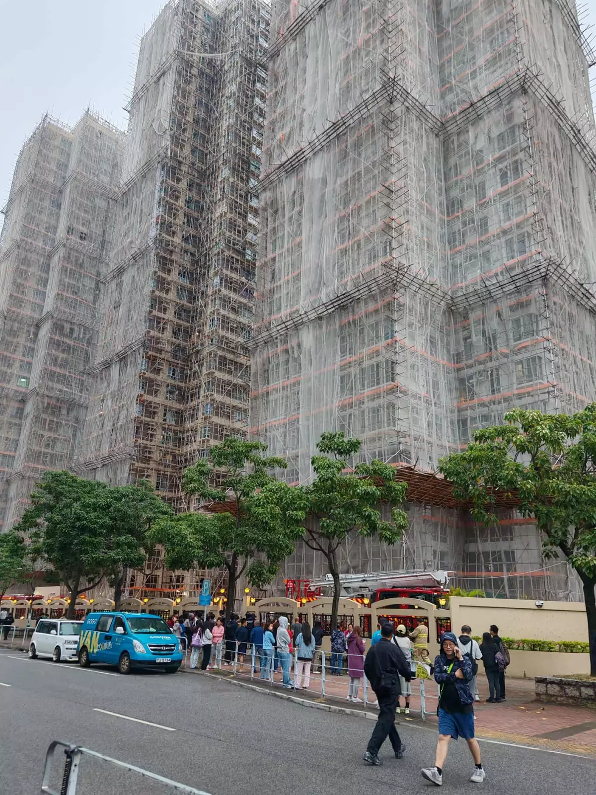 據了解,現場怡樂花園三座樓宇正進行大維修,部分大廈外牆搭有棚架和圍網,與發生五級大火的大埔宏福苑同樣是宏業建築工程作為大維修承辦商。鑑於早前宏福苑大火,負責屋苑大維修的工程顧問公司曾到屋苑檢視工程安全情況,要求「宏業」暫時停工直至提交棚網阻燃測試報告證明文件才可復工,惟居民擔心部分棚網未拆除,會重演同類大火災慘劇。
