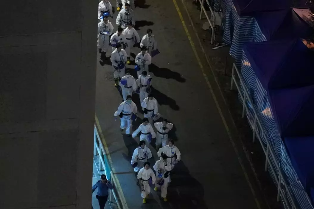 大埔宏福苑五級大火,入夜後警方包括災難遇害者辨認組繼續工作。巴士的報記者攝
