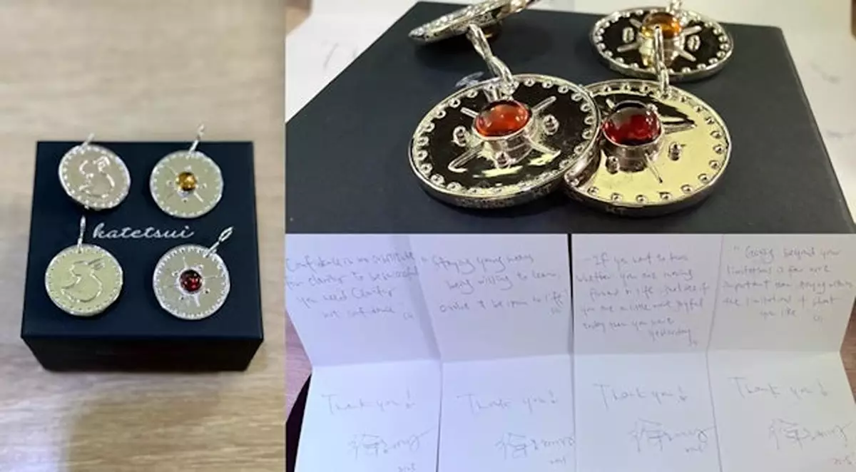 近日有網民上載由徐子珊親手設計的珠寶照片,更附有她的親筆手寫信,引起粉絲一片驚喜與窩心。照片可見,她在多張小卡上寫下暖心鼓勵字句,而首飾盒的包裝亦相當精美,用心十足。