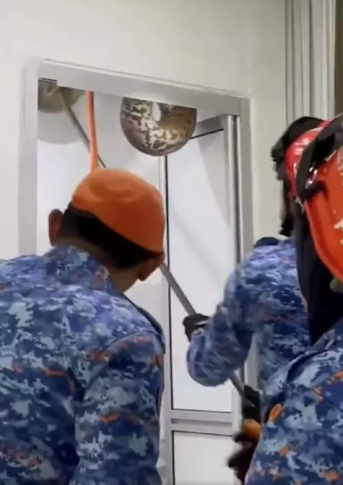 巨蟒衝破天花板墮地 民防部成功制服