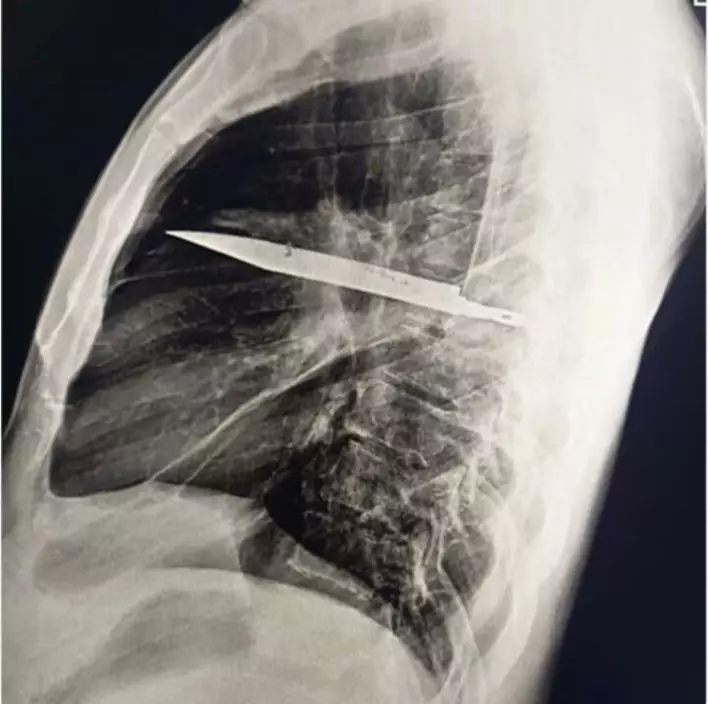 男子照X光揭刀插胸腔內長達8年。網上圖片@academic.oup.com