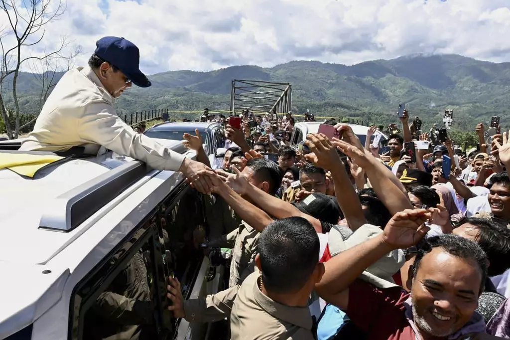 印尼總統蘇比安託在蘇門答臘島東南部亞齊省洪災災區慰問災民。AP圖片