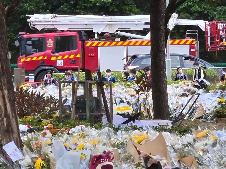 同學返學的路上會經過宏福苑對出的空地,那裏擺滿了市民獻上的鮮花。巴士的報記者攝