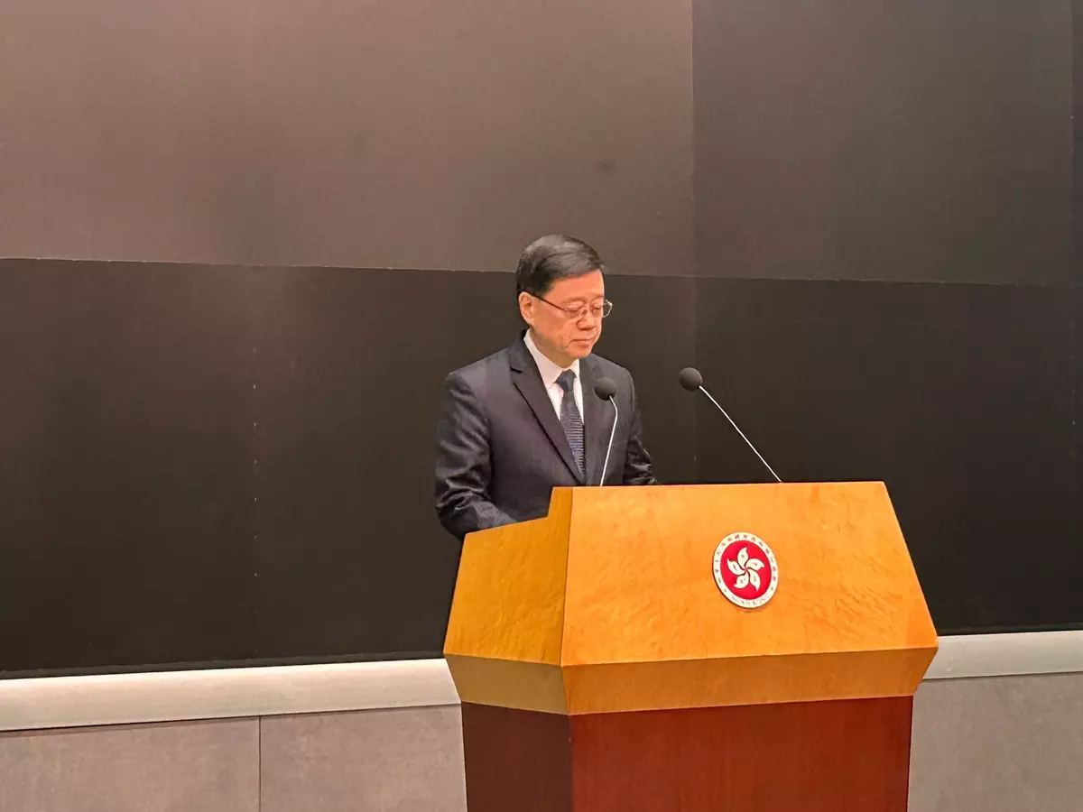 李家超稱會成立由一名法官主持的獨立委員會,審視事故的起火和迅速蔓延的原因和相關問題。。巴士的報記者攝