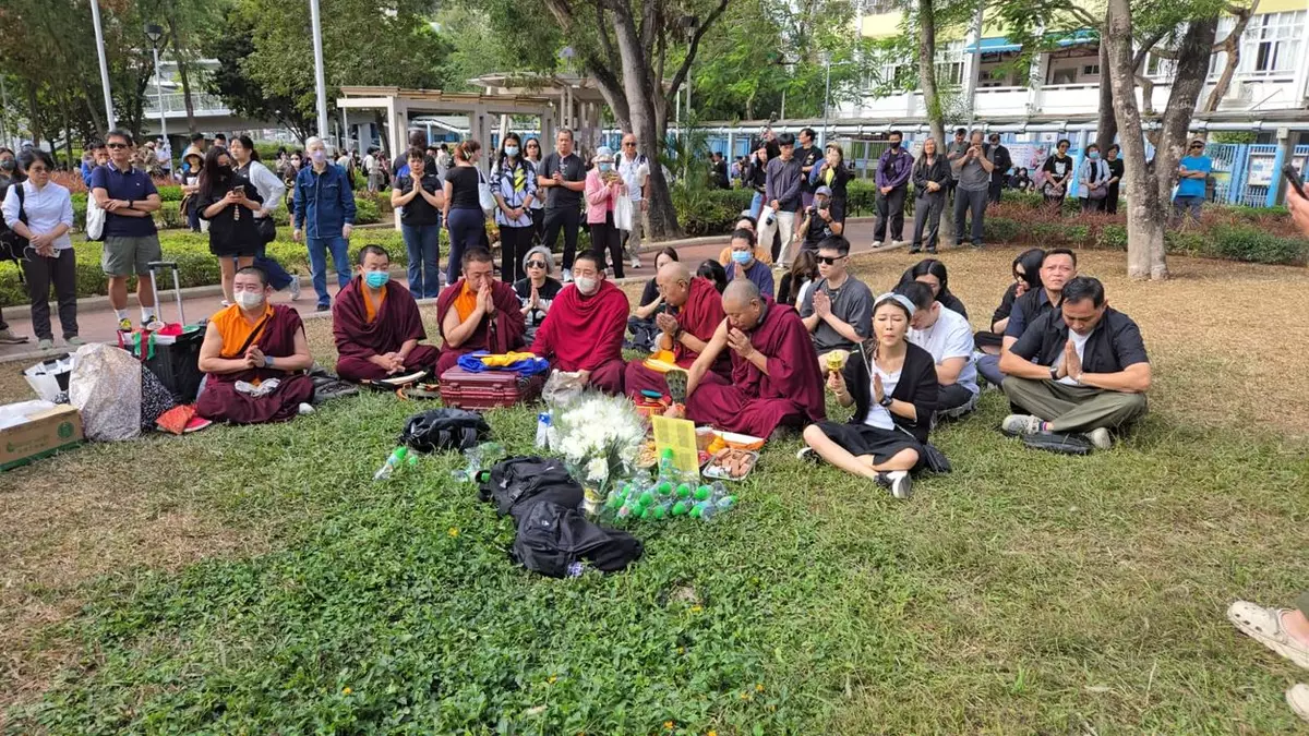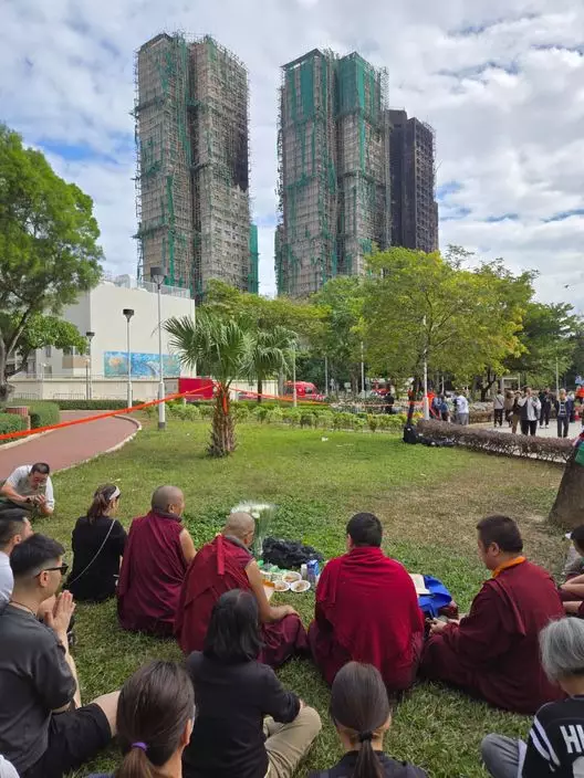 另外,現場亦有一個由六位喇嘛組成的自發性團體,在廣福休憩處為宏福苑死難者念經超渡。