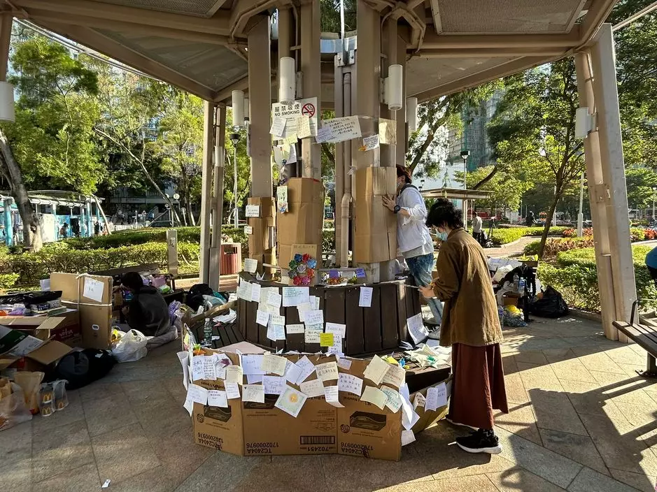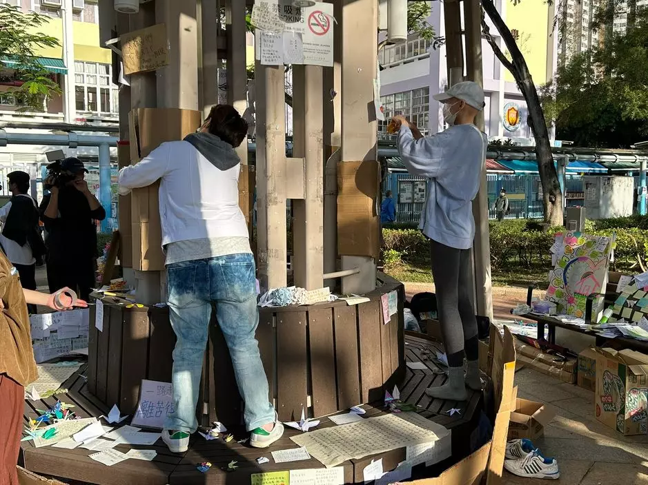 團隊負責人Wing表示,「打氣牌有啲係寫畀朋友,有啲係寫畀親戚,有啲係寫畀街坊。」他希望,文字和紙鶴傳遞出的溫暖能在特殊時期,重新喚起宏福苑居民對日後生活的希望。他和團隊的朋友亦有在現場擔任義工,為有需要的民眾提供及時的幫助。由11月28日起他們已開始進行寫打氣牌的行動,截止目前已製作很多,並放在平台空地上,向民眾展示。
