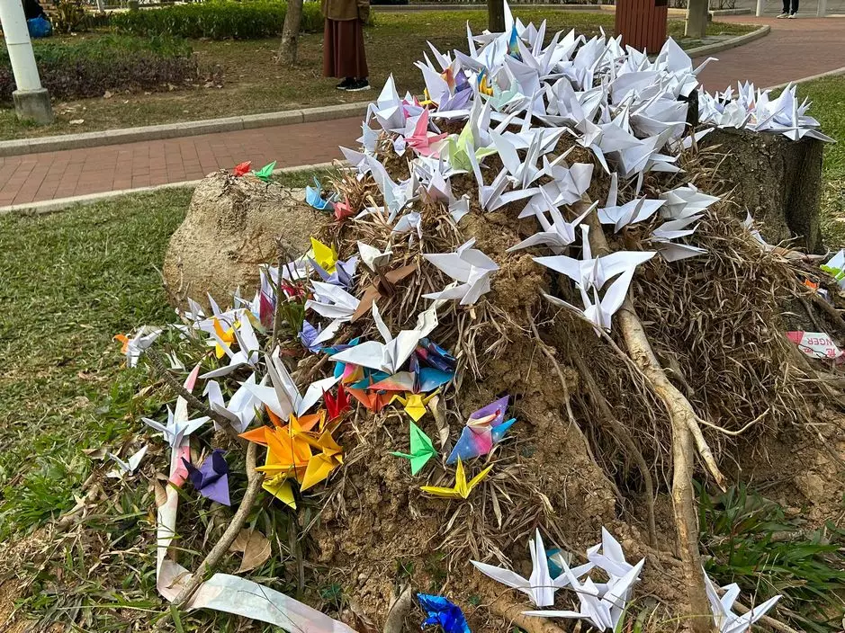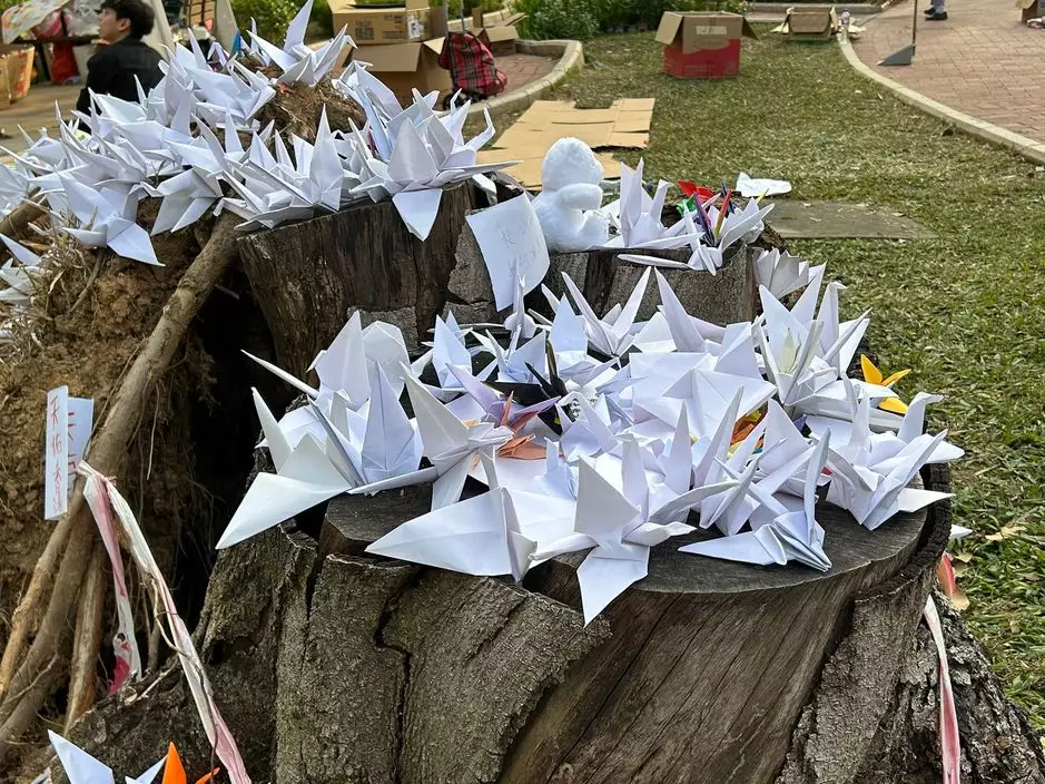 有市民疊製的千紙鶴,寄託哀思。巴士的報記者攝