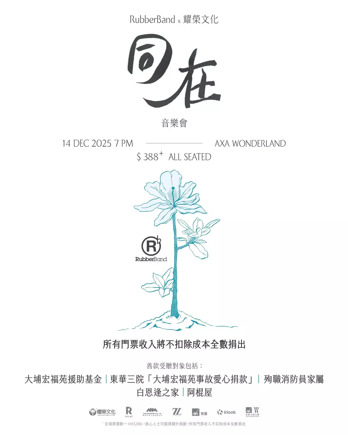 主辦方及支持單位聲明:本次活動之門票收入將全數捐出,不扣除任何成本與開支;所有與演出相關之場地、製作、人員、宣傳及行政等費用,均由主辦方及支持單位自行承擔。為確保募捐款項運