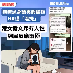 有港女在社交平台Threads發文,控訴公司人事部職員在其嫲嫲過身後,以「非直系家屬」為由拒絕批出喪假。